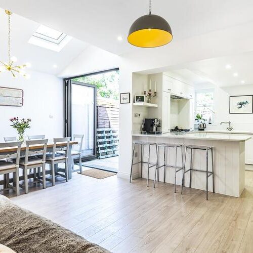 Shinz Design is happy to have worked on the internal refurbishment project at Orchard Avenue, North London. The project incorporates a range of additional features, maximising the space’s potential through detailed design. A new kitchen and dining area, fitted with bespoke cupboards, provides a bright and calming area, opening onto a new rear garden terrace. The internal refurbishment of the first floor sees a combined bath and shower room, with an additional new toilet located on the ground floor.